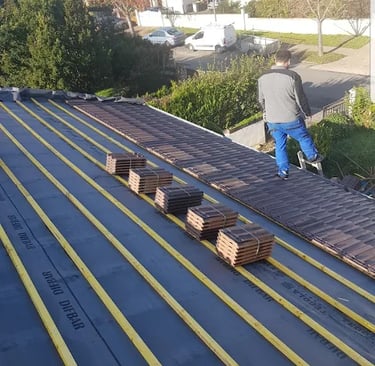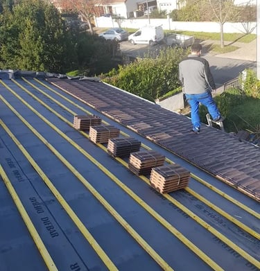 Pose et rénovation en tuile, zinc, ardoise ou bac acier, selon vos besoins.