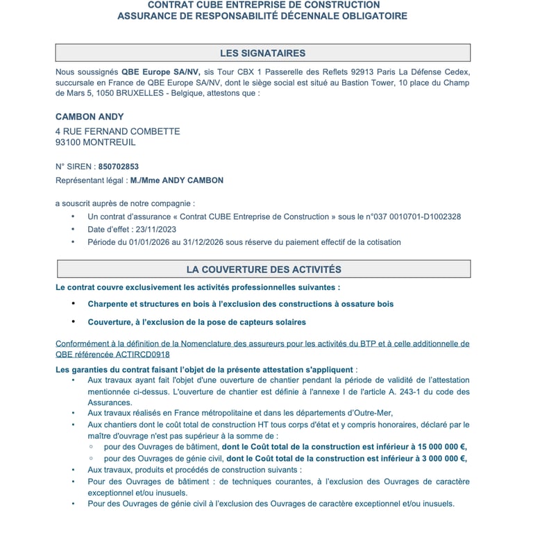 Attestation d'assurance décennale