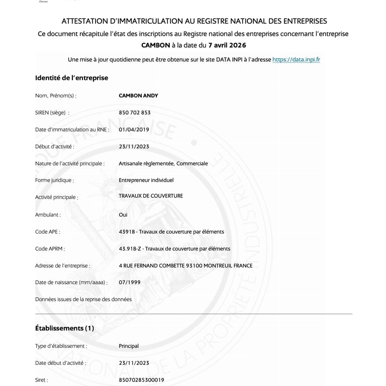 Attestation d'immatriculation